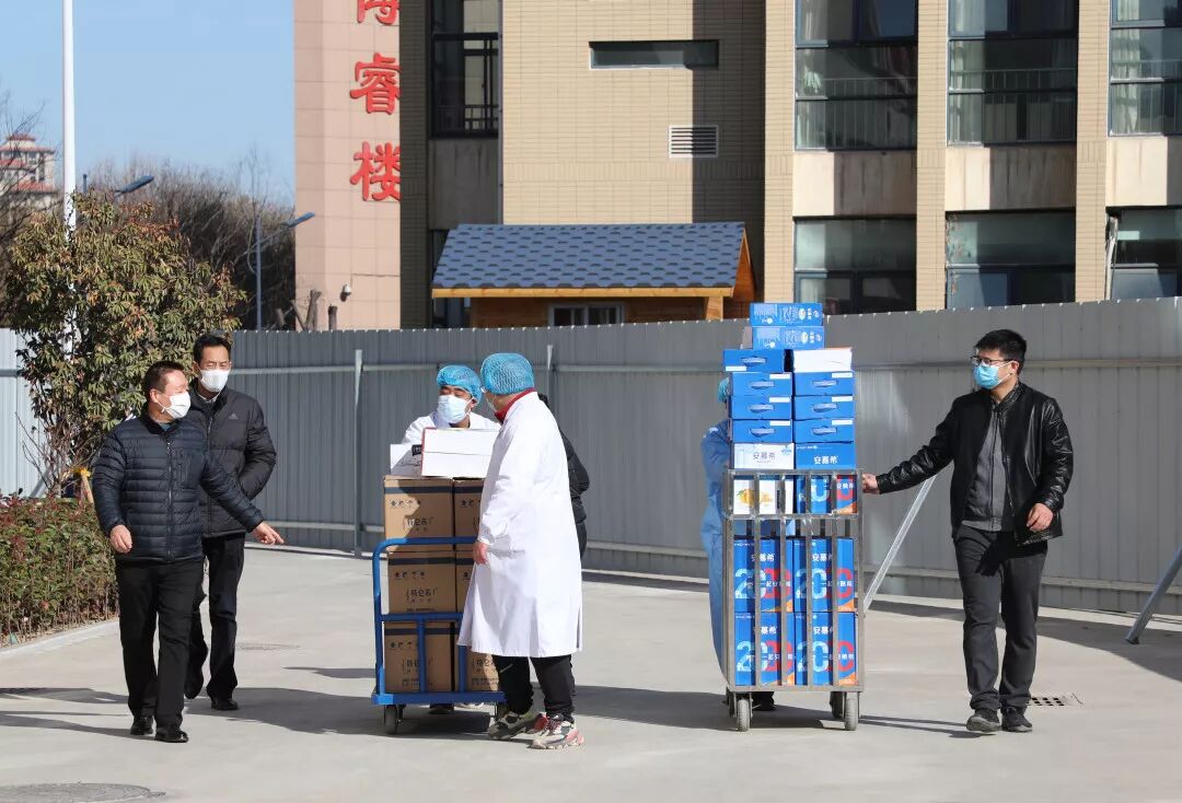 2月18日上午,医院疫情防控指挥部副指挥长郭爱民、朱旭东代表院党委,带领相关科室,为一线医护人员送去温暖慰问。
