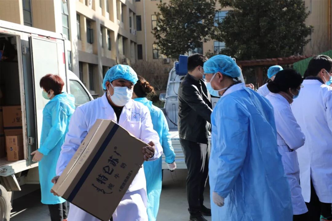 2月13日,医院积极与食品企业联系,购置特产牛肉100箱。为发热门诊、留观病区一线医务人员改善伙食。