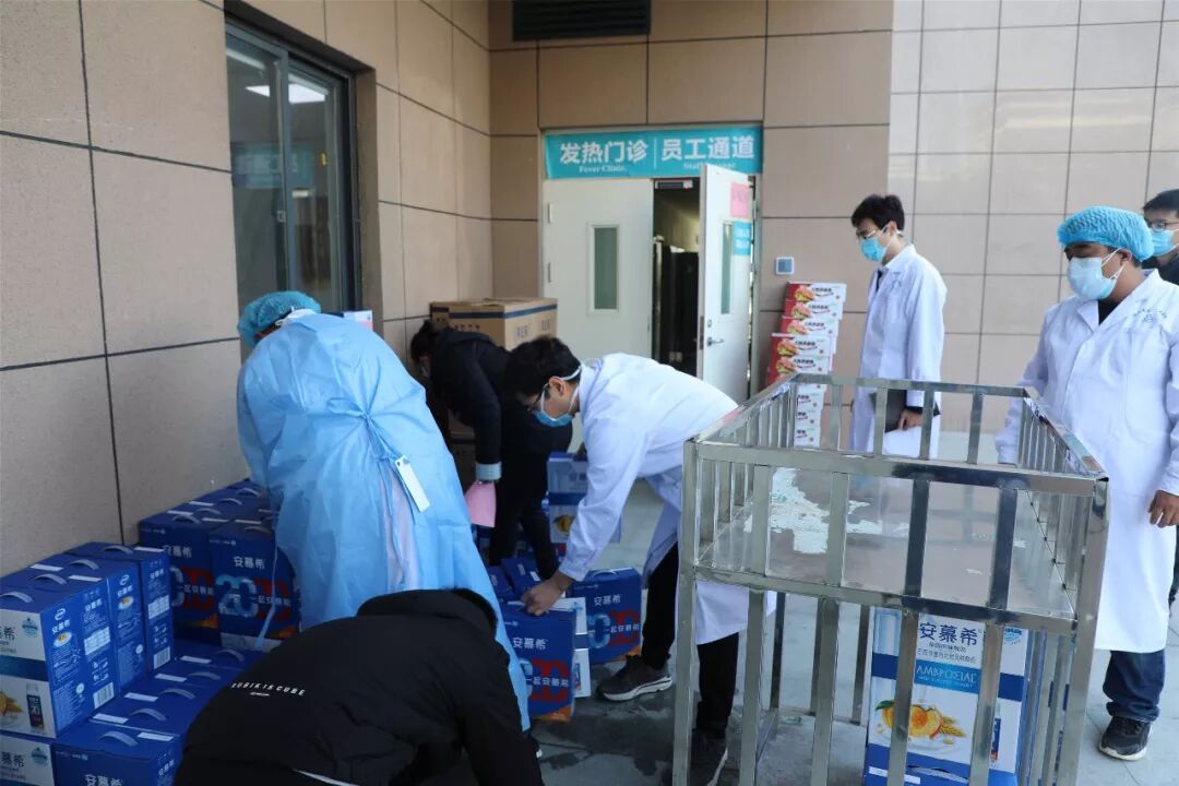 人多力量大,在大家的共同努力下,慰问品很快被整理安置好。运货小车满载着慰问品,将院党委的心意和温暖,送到发热门诊、预检分诊、留观病区和急诊科的医务人员手中。