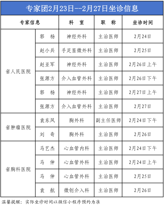 河南省人民医院、河南省肿瘤医院、河南省胸科医院专家团坐诊表(2月23日—2月27日)